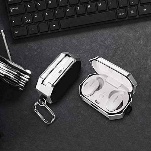 Aerku Cover Protective Compatibile con QuietComfort Earbuds [Supporta la Ricarica Wireless] con Portachiavi Custodia in Silicone/PC, Argento