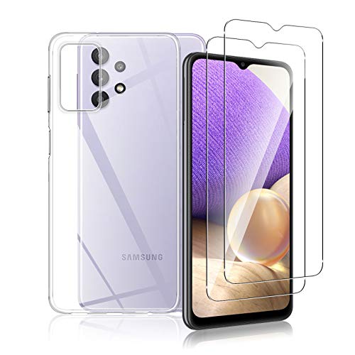 Aerku Cover per Samsung Galaxy A32 5G + 2 Pezzi Pellicola Protettiva in Vetro Temperato, Ultra Sottile Morbido Custodia Trasparente TPU Silicone Case [9H Durezza] [Senza Bolle][Anti Graffio]