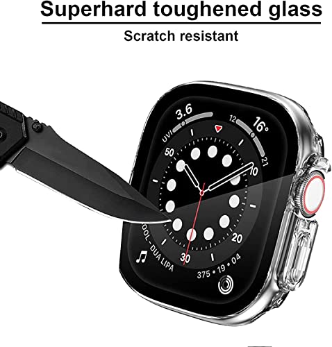 Aerku Custodia compatibile con Apple Watch Ultra 49MM, [Con Vetro Temperato] 9H HD Anti-Graffio Custodia Protettiva Telaio Rigida PC Cover Protezione - Trasparente