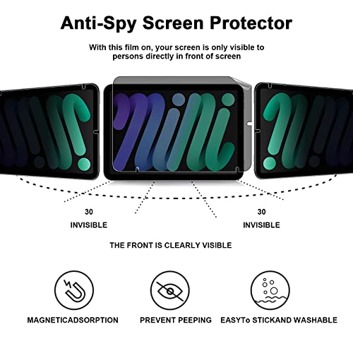 Aerku Pellicola Protettiva per Ipad Mini 6 2021, [Durezza 3H][Resistente ai Graffi][Senza Bolle][Anti-Impronte Digitali/Olio] [Anti Spia] Privacy Proteggi Schermo