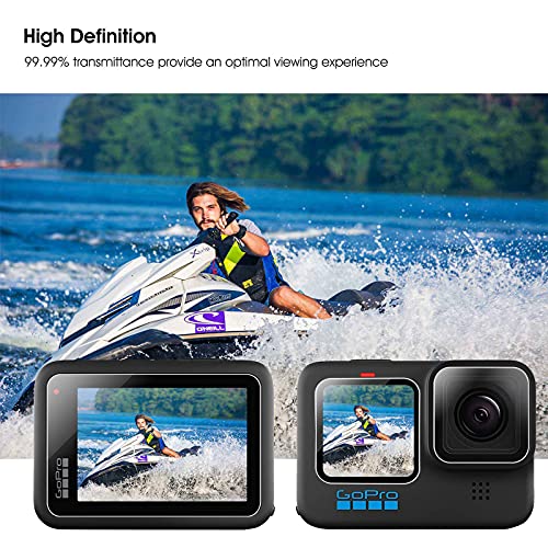 【Protezione antigraffio】 - La protezione per lo schermo è realizzata in vetro temperato con una durezza di 9H, che può proteggere lo schermo e l'obiettivo della videocamera Gopro Hero 10 Black dai graffi e prolungare la durata dello schermo
