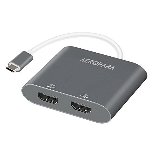 AEROFARA Adattatore USB C Hub USB C con Doppio convertitore HDMI HD 30Hz UHD Video Splitter Adapter per MacBook PRO, iMac 2017, dell XPS 13, HP EliteBook Folio G1, Samsung Note9, Razer Book