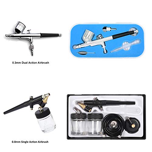 Set aerografo compressore: Aerografo professionale multifunzione Airbrush con 1 aerografi. Compressore aerografo ad alte prestazioni con serbatoio d'aria 3.0L, manometro, filtro dell'aria, pressione regolabile, spazzole per la pulizia e supporto per aerografo per 2 aerografi.