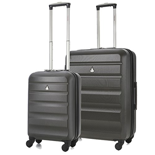Aerolite - Set di 2 Trolley in ABS - Valigie rigide e leggere con 4 ruote (Cabina + Medio) - bagaglio a mano ideale per Ryanair, EasyJet e WizzAir e altre. Garanzia Aerolite.