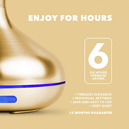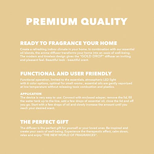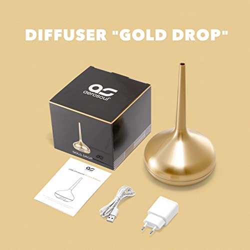 Aerosoul Diffusore di aromi a goccia per oli essenziali, 120 ml, design elegante, spegnimento automatico, 6 ore, luce LED, diffusore di aromaterapia, plastica effetto oro