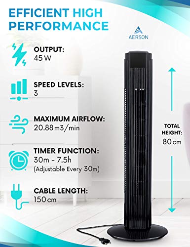 AERSON Ventilatore a Torre Digitale Oscillante e Silenzioso, con Telecomando, Altezza 80 cm, 3 Velocità 3 Modi Timer Temperatura Ambiente Potente (Nero)