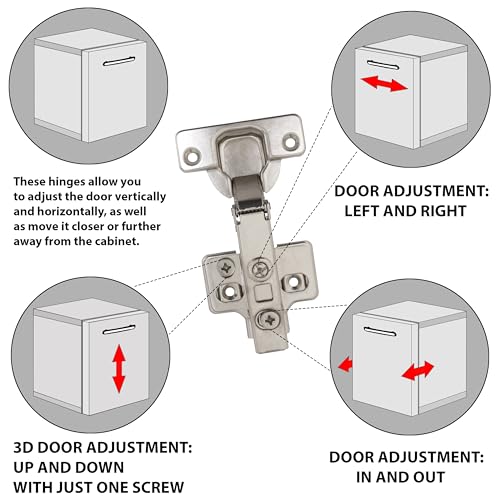 Set di 4 cerniere invisibili a clip per porte di mobili. Con ammortizzatore e regolazione 3D