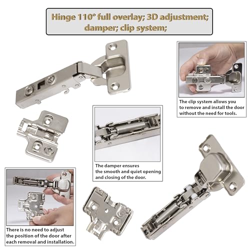 AERZETIX - C41043 - Set di 4 cerniere invisibili a clip per porte di mobili - con ammortizzatore e regolazione 3D - a rivestimento totale/in applicato - apertura 110° - apertura di montaggio 35mm