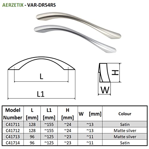 Aerzetix - C41711 - Set di 5 maniglie per mobili interasse 128mm - porte armadio cassetto decorazione interno arredamento cucina soggiorno assemblaggio - in metallo - finitura satinato
