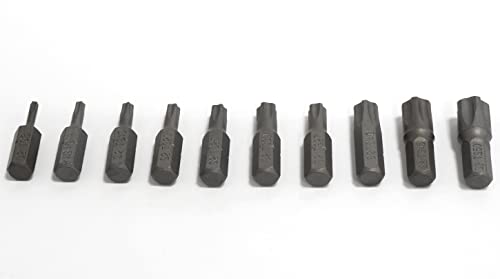 Set di 10 pezzi 1/4'' T8, T10, T15, T20, T25, T27, T30, T40, T45, T50 con impronta a stella 5 lati per viti inviolabile di sicurezza. La dimensione è visibile e contrassegnata su ogni pezzo in modo che sia chiaramente contrassegnata ed eviti la perdita. È un insieme di strumenti da avere a casa, in garage e in officina da artigiani professionisti o tuttofare per poter esercitare il proprio mestiere