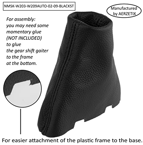 Aerzetix - C60309 - Cuffia per leva del cambio in vera pelle - compatibile con versioni con cambio automatico di Mercedes-Benz Classe C W203 2002-2009, CLK W209 - colore: nero con cuciture nere