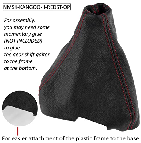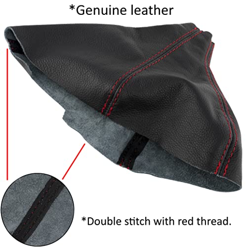 Aerzetix - C63364 - Cuffia per leva del cambio in vera pelle - compatibile con Renault Kangoo 2 dal 2007 al 2018 - colore: nero con cuciture rosse - per cambio manuale