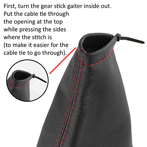 Aerzetix - C63370 - Cuffia per leva del cambio in vera pelle - compatibile con Renault Megane Scenic dal 1996 al 2002 - colore: nero con cuciture rosse - per cambio manuale