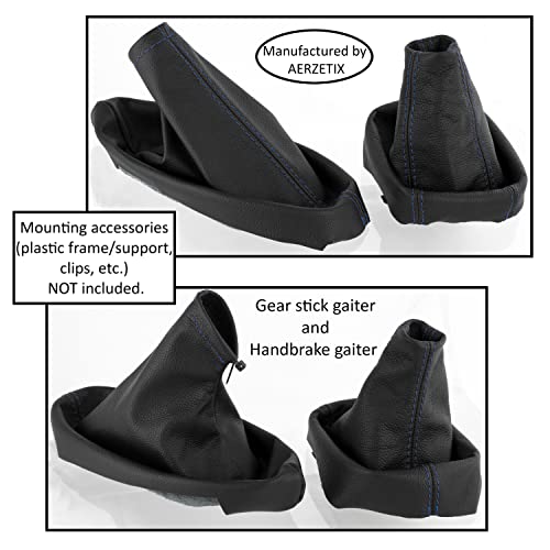 Aerzetix - C63850 - Cuffia per leva del cambio e freno a mano in vera pelle - compatibile con Opel Corsa D 2006-2014 - colore: nero con cuciture blu - per cambio manuale