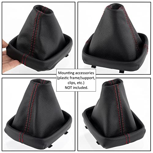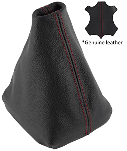 Aerzetix - C63925 - Cuffia per leva del cambio in vera pelle - compatibile con VW Golf 5 2003-2009, Jetta 5 A5 1K 2005-2011 - colore: nero con cuciture rosse - per cambio manuale