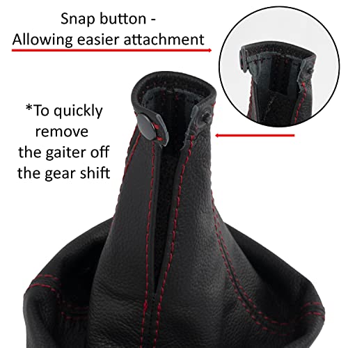 Aerzetix - C63943 - Cuffia per leva del cambio in vera pelle - compatibile con Alfa Romeo 147 2000-2004 - colore: nero con cuciture rosse - per cambio manuale