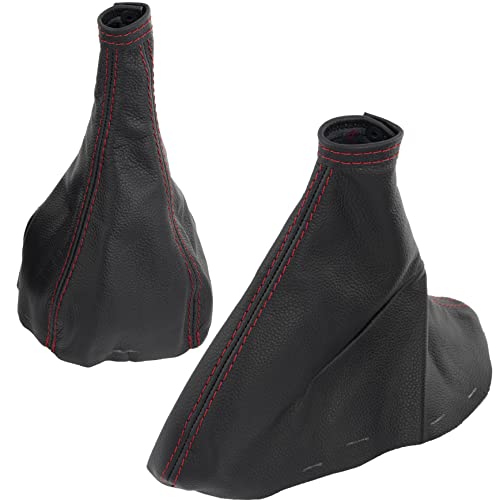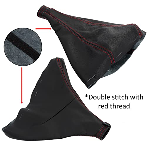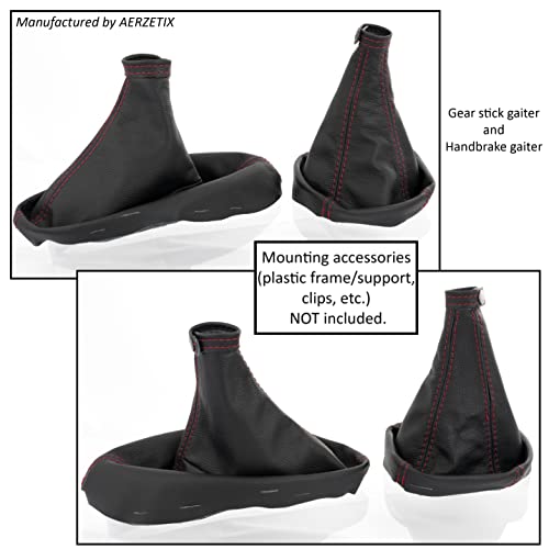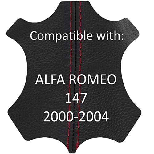 Aerzetix - C63965 - Cuffia per leva del cambio e freno a mano in vera pelle - compatibile con Alfa Romeo 147 2000-2004 - colore: nero con cuciture rosse - per cambio manuale