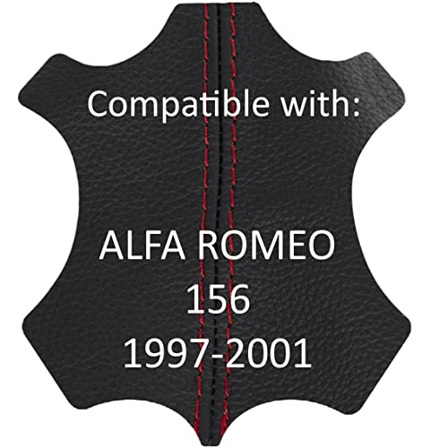 Aerzetix - C63966 - Cuffia per leva del cambio e freno a mano in vera pelle - compatibile con Alfa Romeo 156 1997-2001 - colore: nero con cuciture rosse - per cambio manuale