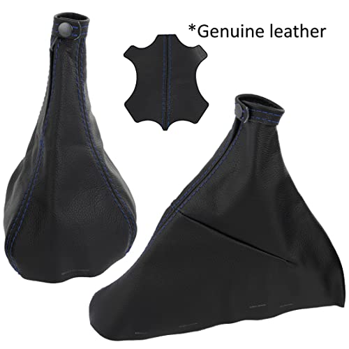 Aerzetix - C64014 - Cuffia per leva del cambio e freno a mano in vera pelle - compatibile con Alfa Romeo 147 2000-2004 - colore: nero con cuciture blu - per cambio manuale