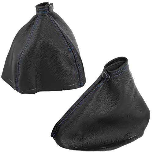 Aerzetix - C64016 - Cuffia per leva del cambio e freno a mano in vera pelle - compatibile con Alfa Romeo 159 2005-2011 - colore: nero con cuciture blu - per cambio manuale