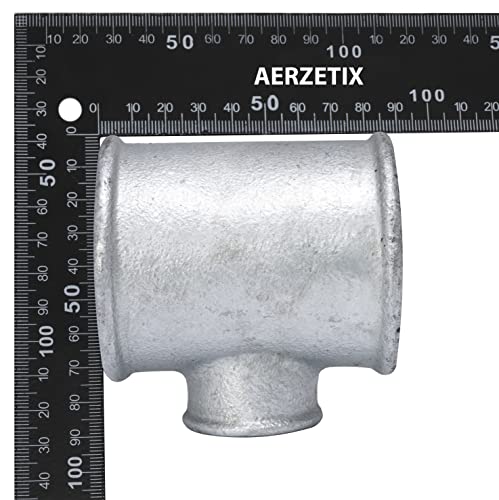 AERZETIX - C64879 - Raccordo riduttore a T per avvitare 2'' x 1" a 90° femmina-femmina-femmina in ghisa - connettore tubo filettato - finitura zincata - impianto idraulico riscaldamento