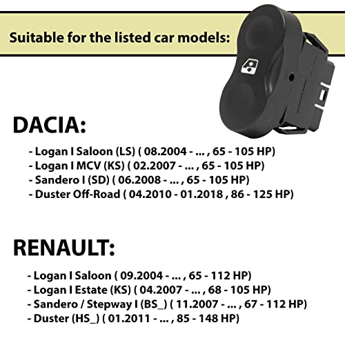 AERZETIX - C65393 - Interruttore per alzacristalli - lato di montaggio anteriore - numero di poli: 5 pin - compatibile con Renault, Dacia 8200602227, 8200325065 - in plastica