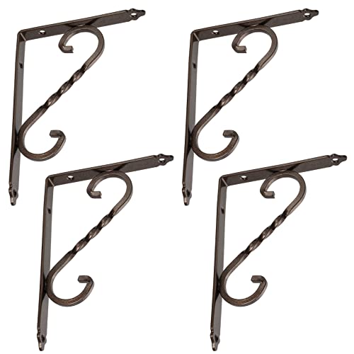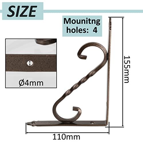 AERZETIX - C65835 - Set di 4 Supporti decorativi staffe consolle rinforzati per mensole ad angolo retto - 110x155mm - apertura Ø4mm - per fissaggio a parete - in acciaio - colore rame