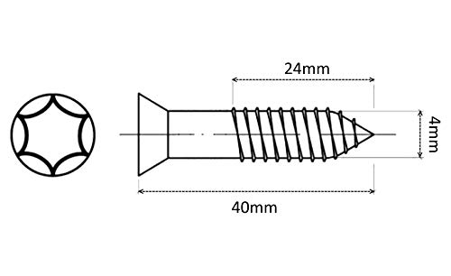 Aerzetix - 100 viti per legno a testa conica, filettatura parziale 4/40 mm, acciaio zincato, impronta Torx C41540