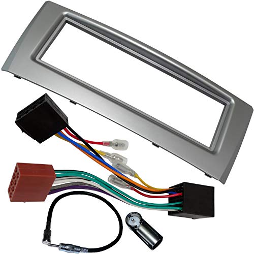 AERZETIX - Kit di montaggio per autoradio standard 1DIN - Mascherina telaio, cavo di collegamento e adattatori per antenna - Argento - C4502A