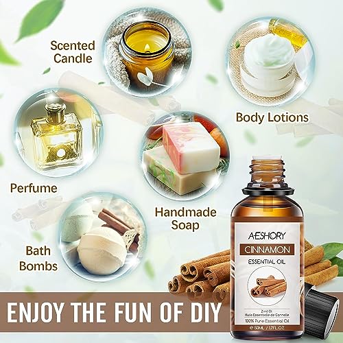 【100% Puri & Naturali Olio di Cannella】— Aeshory olio essenziale di cannella è di origine vegetale, senza additivi, riempitivi, basi o vettori, senza prodotti chimici, senza miscele e sicuro per il corpo. L'olio aromaterapico di cannella ha un caratteristico aroma pungente e caldo ed è eccellente per lenire la stanchezza e la debolezza.