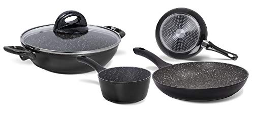Aeternum Essential Set Batteria di Padelle e Pentole 5 pezzi, Adatto all'induzione, Alluminio, Black