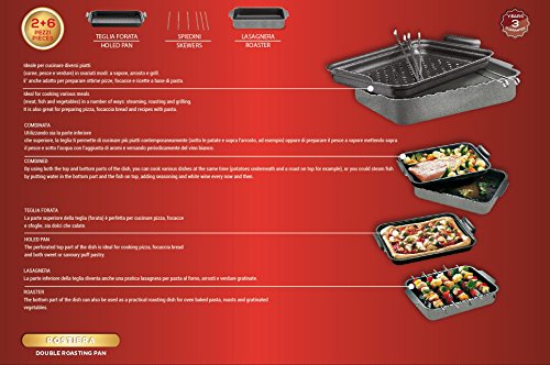 Aeternum New Trudi Rostiera Doppia con Spiedini, Alluminio, Effetto Pietra