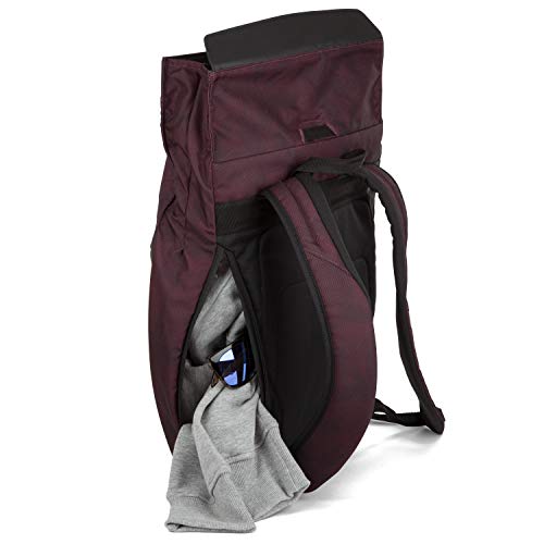 Impermeabile, nastro di fissaggio per laptop o libri, tasca interna in rete con cerniera nascosta sulla schiena, sistema rolltop con chiusura in velcro e fibbia in alluminio.