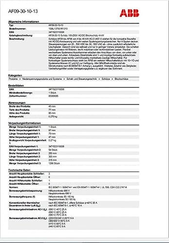 ABB AF09-30-10-13 CONT 3P 9A 100-250VAC/DC