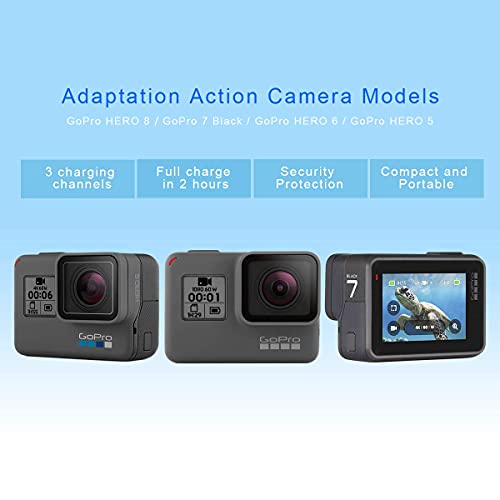 AFAITH Caricabatteria tripla caricabatteria + 2 pcs Batterie per Gopro, 3 canali Caricabatteria Multifunzione Type-C Caricabatteria per GoPro HERO5 HERO6 Hero 7 black Hero 2018 - GP076