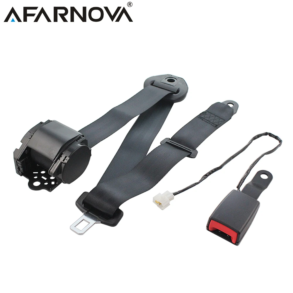 Afarnova Seat Belt With Warning Wire Safety Belt 3 Points Retractable Lap Shoulder Seatbelt Universal Adjustable Black Red