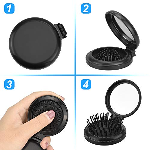 AFASOES 4 Pz Spazzole Pieghevole con Specchio Rotondo Spazzola per Capelli da Viaggio con Specchio Mini Pettini per Capelli da Viaggio Portatile 2 in 1 Massaggio per Capelli Donne e Ragazze (Nero)