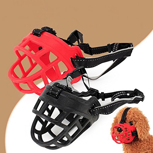 Afcoquanjucheer - Museruola per cani in silicone, regolabile, traspirante, per cani di tutte le taglie (rosso)