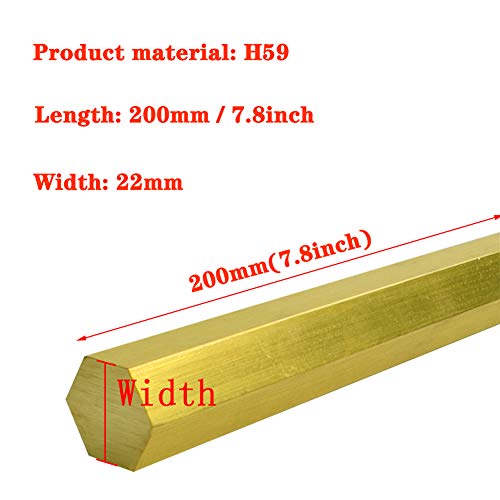 AFexm Barre esagonali in Ottone Pieno H59 (Hardware Solido) aste in Rame Esagonale in Rame Lunghezza 200mm- Larghezza Diagonale 22mm,2 PCS