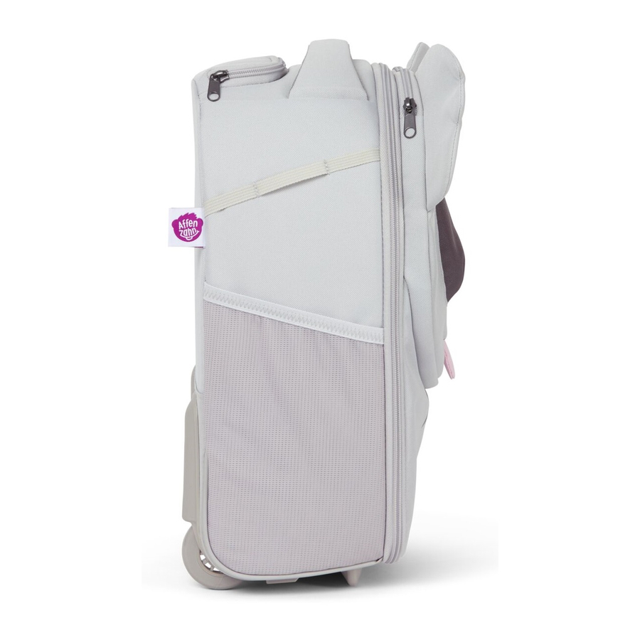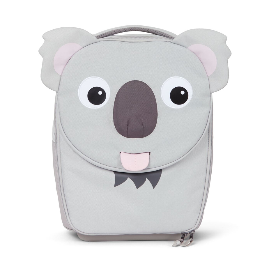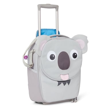 Sia per i weekend dai nonni o dagli amichetti, sia per lunghi viaggi: il nuovo trolley a forma di koala renderà ogni viaggio ancora più speciale. La valigia si tira con facilità e ha abbastanza spazio per tutto il necessario. Caratteristiche: Funzioni: Dettagl prodotto: Linguetta con targhetta per il nome Dimensioni bagaglio a mano Manico regolabile in 3 altezze Manico da trasporto Cinghia a tracolla Tasca con muso disegnato Tasche esterne Scomparto interno in rete Ruote Materiale: essuti costituiti per il 50% da bottiglie in PET riciclato poliestere Idrorepellente all'acqua e allo sporco Facile da pulire Dettagli: Colore: Grigio Misure: 30 x 16,5 x 40 cm Peso: ca 1500 g Volume: circa 20 litri Età: da 3 a 5 anni. Attenzione: Non adatto ai bambini di età inferiore a 3 anni.
