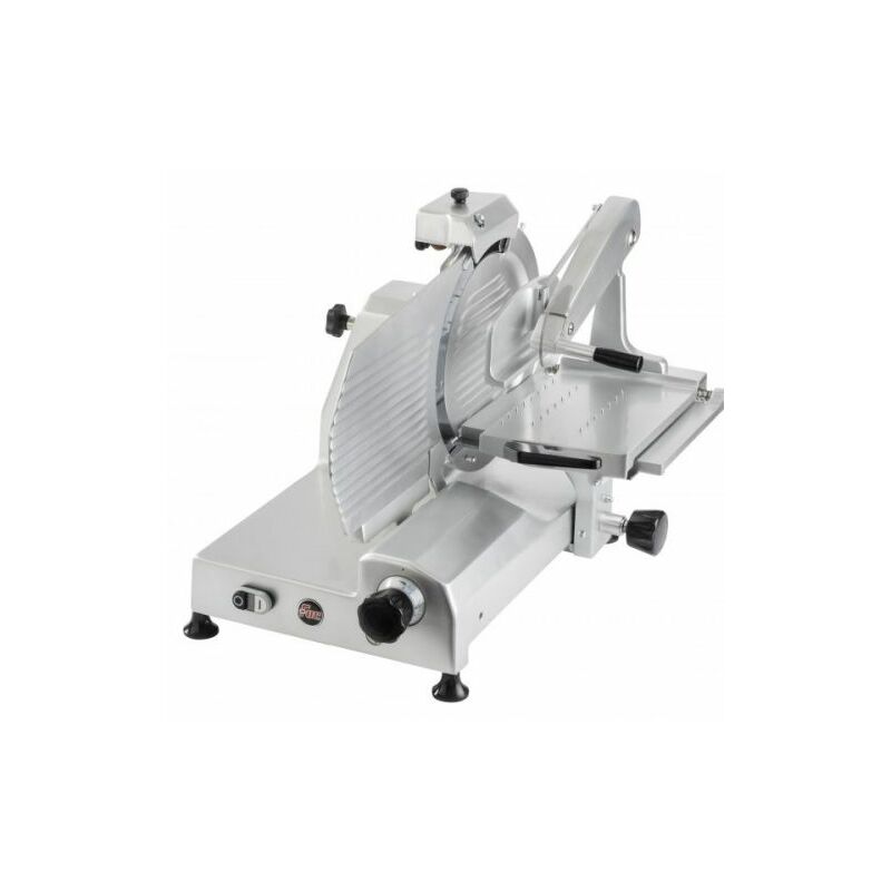 AFFETTATRICE ELETTRICA PROFESSIONALE FAC L'affettatrice verticale modello F370 TS-VL costruita in lega di alluminio trattata anodicamente ha il vantaggio di una rapida pulizia ed assoluta igiene. Il regolatore dello spessore di taglio da 0 a 16 mm è molto sensibile e permette una regolazione decimale. Le caratteristiche distintive della linea TS-V L sono: - basamento costituito da un'unica fusione - blocco piatto di serie con pomolo inamovibile - anello di protezione da acqua e grasso attorno al mandrino - maggiore distanza lama/cassa per facilitare la pulizia