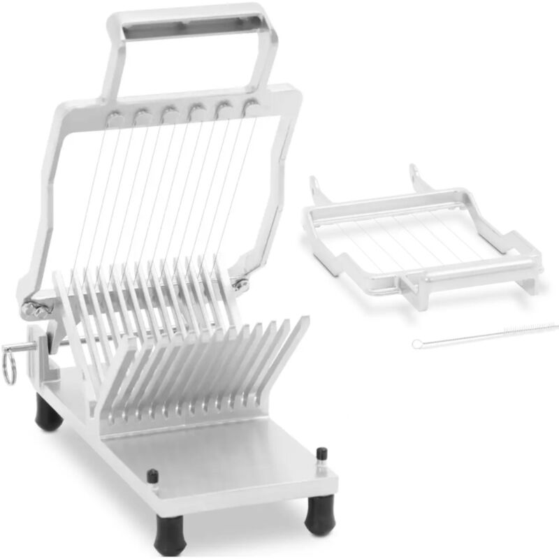 inserti a due fili equipaggiati con cui è possibile creare rapidamente una grande quantità di penne o cubi con uno spessore di 10 o 20 mm. Queste opzioni di adattamento consentono una varietà di utilizzo come richiesto. 2 Frame di taglio Colore di taglio: 10/20 mm Materiale: acciaio inossidabile /alluminio Penne o cubi incl. spazzola