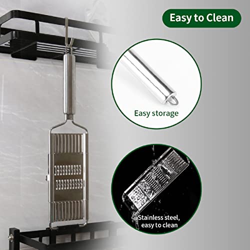 Facile da pulire: la superficie del manico non antiscivolo del trituratore manuale è liscia, facile da afferrare, non cade facilmente, può risparmiare sforzo ed evitare lo scivolamento della grattugia. È necessario prestare attenzione all'ultimo piccolo pezzo necessario per rallentare, in modo da non ferire le mani. Può essere lavato in acqua o lavastoviglie. Si consiglia di pulire con un pennello per rimuovere correttamente il r-esidue sulla lama.