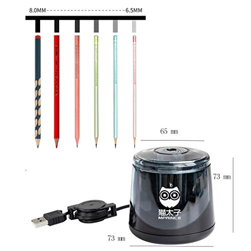 Adatto a tutte le matite in legno - Il temperamatite elettrico può affilare tutte le matite in grafite e colorate standard da 6,5-8 mm di diametro con facilità e velocità, funziona sia con matite rotonde che esagonali. Non per matite senza legno.