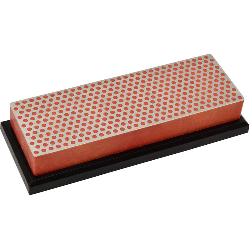 offrono una superficie di affilatura che soddisfa varie esigenze di affilatura dei bordi. Affilatura semplice e veloce: Affilare con le pietre affilate con uno strato diamantato è facile e veloce. Non sono necessari oli grassi, potete affilare a secco o con acqua. Struttura solida: Le affilatrici della DMT presentano una struttura solida per offrire anni di prestazioni costanti e un servizio affidabile. Scatola con piedini in gomma antiscivolo: Questa affilatrice