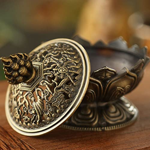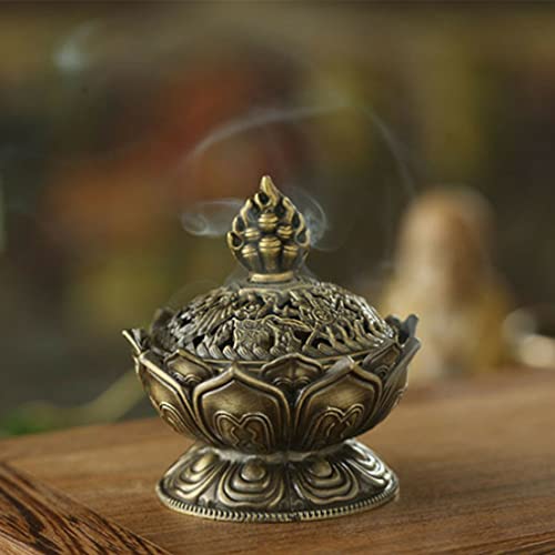 Mini affumicatore Lotus Bronzo in lega di zinco, con coperchio, contenitore per incenso per carbone, anche per bastoncini di incenso o coni, per decorazione di casa e ufficio