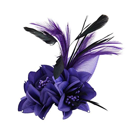 Afinder Spilla da cerimonia nuziale con fiore in maglia di piume nuziali, Viola, Taglia unica