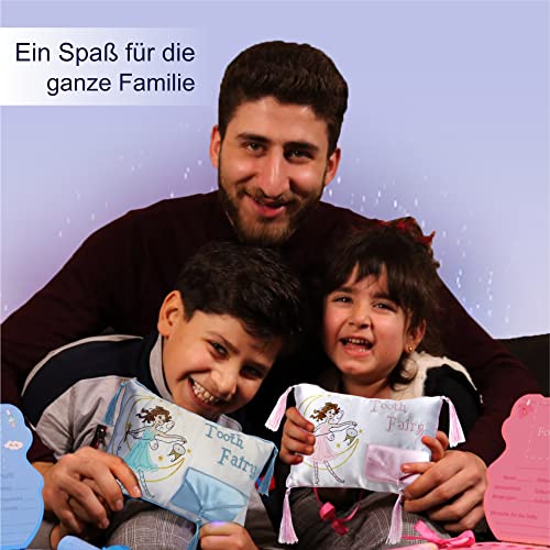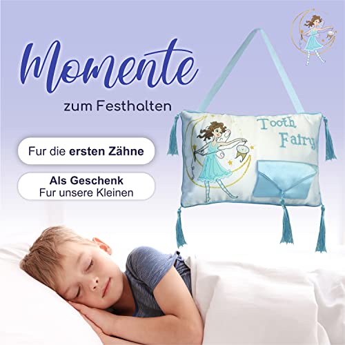 MIM AFNAN Cuscino fatina dei denti - con motivo fatina dei denti e tasca per il dente di latte originale - Idea regalo per ragazze e ragazzi
