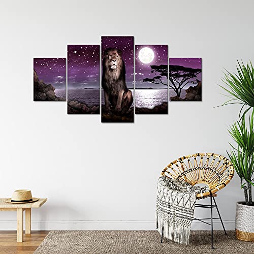Runa Art Africa Leone Murali Tela Non Tessuta 5 Pezzi Luna Grigio Viola Camera Da Letto Corridoio 022953b