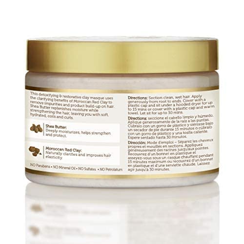 La maschera all'argilla utilizza i vantaggi purificanti dell'argilla rossa marocchina per rimuovere le impurità e l'accumulo di prodotti dai capelli.